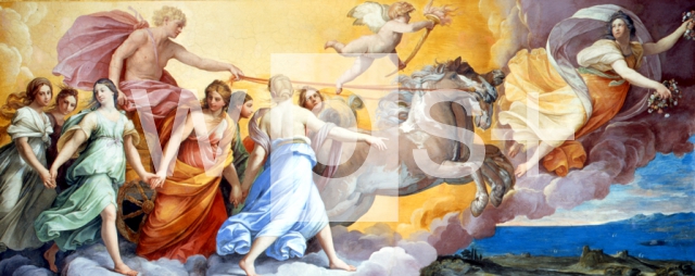 1612-14年|フレスコ(天井画・壁画)|280×700cm|ローマ:パッラヴィチーニ=ロスピリオージ宮殿/カジーノ・デラウローラ・パッラヴィチーニ