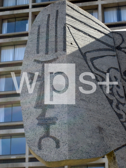 備考|1934年にピカソによって制作されたオリジナルの改作。ノルウェー人彫刻家の作品。背後の建物は中国の建築家ペイ氏によるもの。