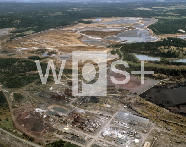 ブリティッシュコロンビア(カナダ) 備考|カナダ西部、ブリティッシュコロンビア州南東部、キンバリー。※手前にはアグリウム社(1995年以前はコミンコ社)の肥料工場、その後には肥料採掘坑。