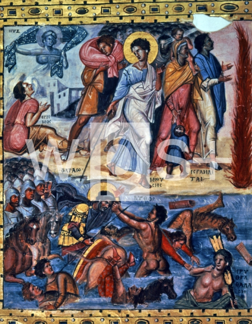 10世紀初頭|ミニアチュール(挿絵)|パリ:国立図書館 備考|旧約聖書「出エジプト記」の物語。ギリシアのミニアチュール、「パリ詩篇」より。