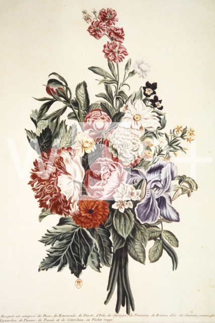 カテゴリ: 工芸 タグ: 工芸 ブショ 花束 アイリス 芥子 牡丹 ジャスミンライラック すみれ パンジー 植物 花 ボタニカルアート 自然史博物館の図書館(パリ)