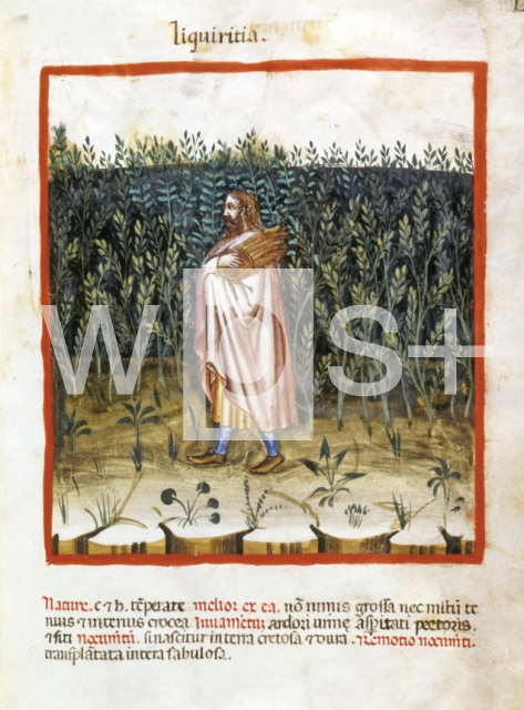 カテゴリ: 工芸 タグ: 工芸 健康全書 アブルカシス ジョヴァンニーノ・デ・グラッシ 甘草 薬草 ミニアチュール 1410年 カサナテンセ図書館(ローマ) アブー・アル=カースィム・アッ=ザフラウィー 医書 生薬 リコリス 甘味料 薬用植物