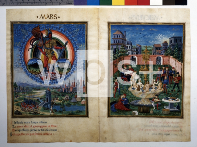 カテゴリ: 工芸 タグ: 工芸 惑星 ミニアチュール 天空論 15世紀末 火星 さそり座 牡羊座 クリストフォロ・デ・プレディス PRM エステンセ図書館(モデナ) 星座 噴水 泉