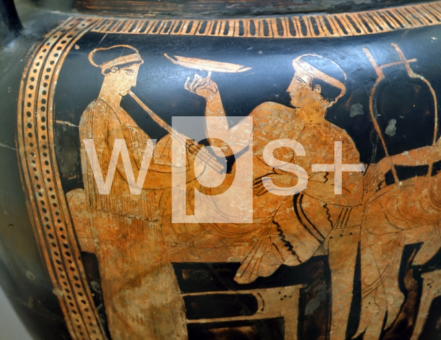 カテゴリ: 古代美術 タグ: 古代美術 音楽 ギリシア美術 クラテル 宴会 オレステス 国立考古美術館(パレルモ) 容器 アウロス 笛 キウジ 紀元前480年 杯 アッティカ