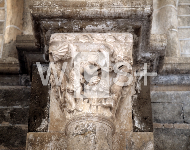 - サント=マドレーヌ大聖堂の内部身廊の柱頭「音楽師と好色を象徴化した悪魔」