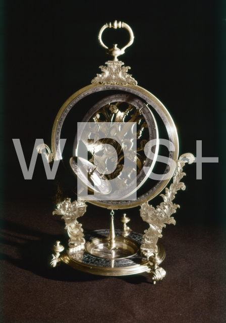 備考|宇宙の昼夜半分の機械式円型指針盤または太陽時辰儀。ロイの機械学の名匠ロウリー(1674-1728)作の著名がある。真鍮および銀メッキを施した真鍮製。